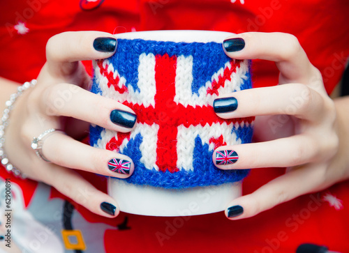 Women's hands keeping the cup with British symbol