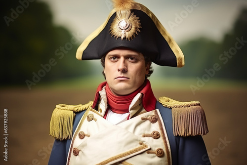Man wearing a costume of Napoleon , the french historical emperor of France