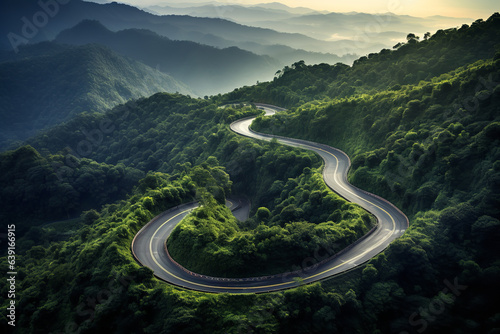 Winding through a dense forest, a mountain pass road with its challenging hairpin bends offers a thrilling driving experience