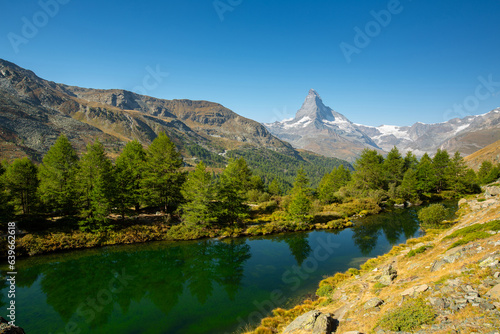 Lac de montagne avec le Cervin en arrière plan