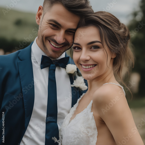 Retrato de una pareja de recién casados sonriendo
