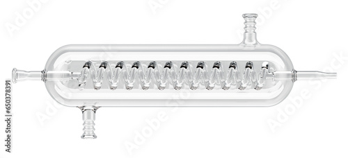 Coil condenser, lab chemistry glassware. Glass spiral reflux condenser, 3D rendering isolated on transparent background