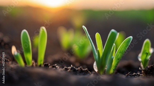 A Close-Up View of Dew-Fresh Sprouts at Dawn