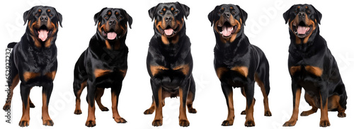Smiling adult rottweiler dog, pedigree dog breed isolated on transparent background generative ai
