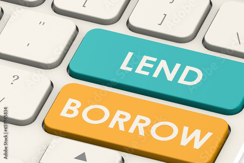 Lend and borrow word on white keyboard