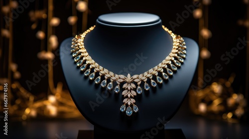luxury of a gold necklace displayed on a jewelry stand