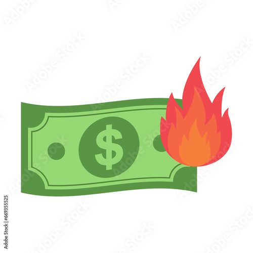 Vector illustration of money on fire icon sign and symbol. colored icons for website design .Simple design on transparent background (PNG).