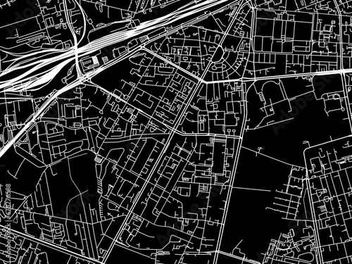 Vector road map of the city of Ochota in Poland with white roads on a black background.