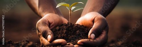 Ein kleiner Baum mit Erdballen zum Pflanzen, wird in den zwei Händen gehalten. (Generative AI)