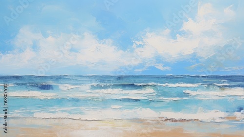 粗いタッチの夏のビーチの油絵_2