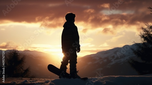 A person standing in the snow with a snowboard. Suitable for winter sports or outdoor adventure concepts