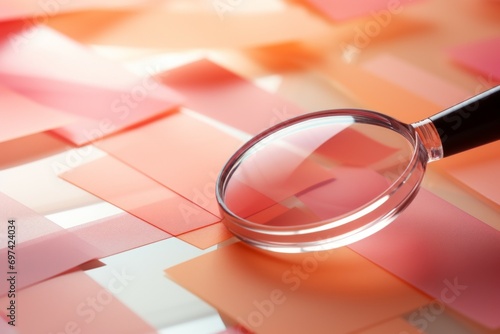 Magnifying glass in a trendy color. Background with selective focus and copy space