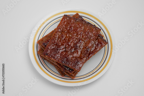 Pork jerky known as 'Bak Kwa' in Chinese, served on a plate