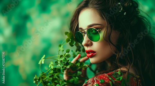 St. Patrick's Day. Beautiful smiling woman wearing green hat. Green background.