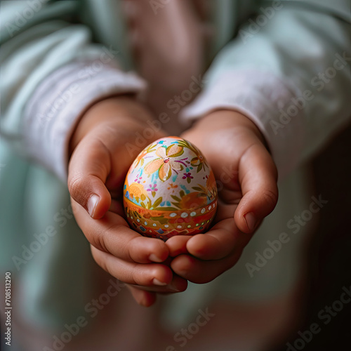 Vibrant Hand-Painted Easter Egg Held Gently in Child's Palms