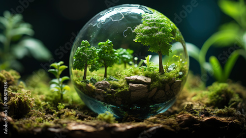Miniature Forest Ecosystem in Glass Orb Terrarium - Serene Green Space for Sustainable Living, EcoSphere: Nature's Breath in Your Space - AI Generated