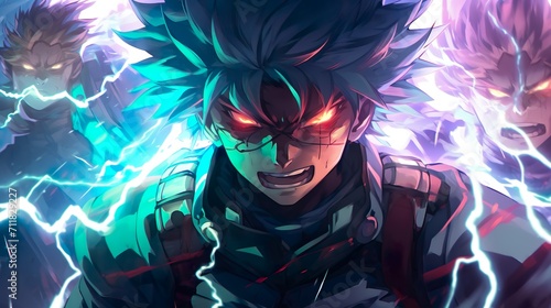 Kraftentfesselung: Anime-Kämpfer im elektrischen Inferno