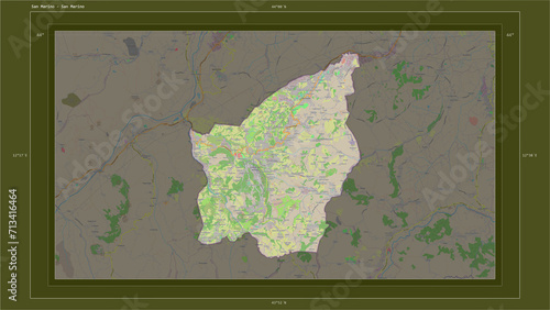 San Marino composition. OSM Topographic standard style map