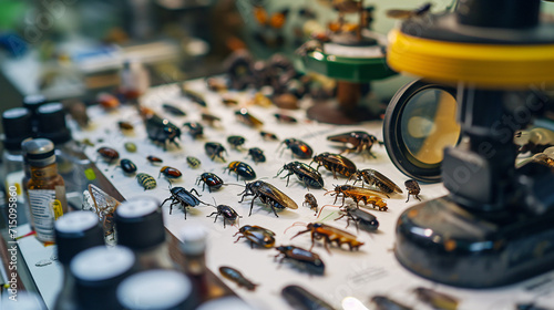 Various insects in scientific collection. Entomology research and educational display. Biodiversity and environmental study concept for design and print