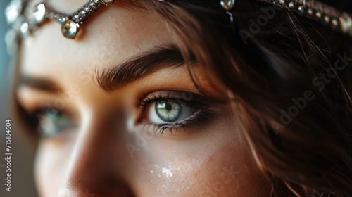 A darkhaired beauty with a gaze and a sparkling crystal headband.