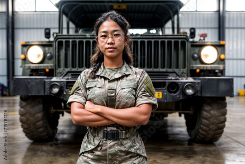 skilled and empowered attractive female mechanic in the military, symbolizing gender diversity and expertise within the armed forces