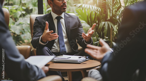 A lawyer facilitating a mediation session between disputing parties, showcasing alternative dispute resolution skills in a neutral environment.