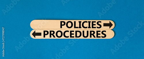 Procedures and policies symbol. Concept word Procedures Policies on beautiful wooden stick. Beautiful blue table blue background. Business procedures and policies concept. Copy space