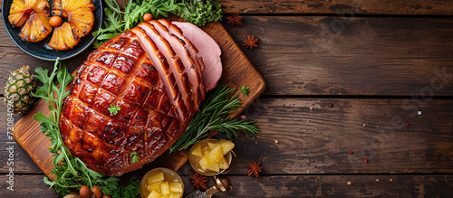 Easter ham is made with brown sugar, honey, mustard, and sometimes cloves or pineapple.