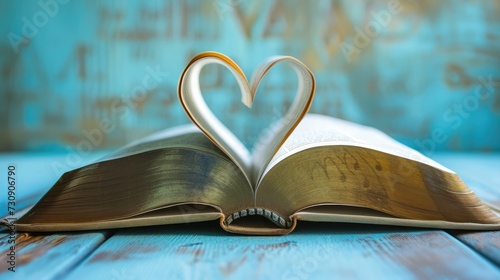 Bible on table with pages folded into heart shape