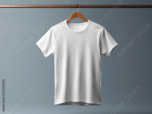 Hanging on a White T-shirt Design for Apparel Mockup Template, Beautiful Wall Background