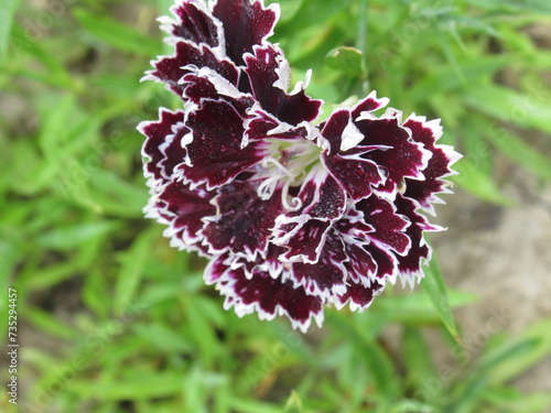 Zbliżenie na kwiat bordowego goździka chińskiego