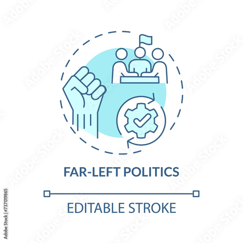 Far-left politics soft blue concept icon. Progressive social, political reform. Human rights equality. Social justice. Round shape line illustration. Abstract idea. Graphic design. Easy to use