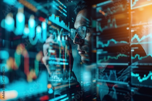 Charting Success: Magazine Photography Showcasing Financial Expert Analyzing Stock Market Trends