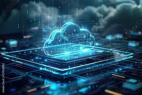 Cloud technology concept on tablet or electronic panel symbolizing online data storage abstract digital networking and cloud computing highlighting and security in modern business and communication