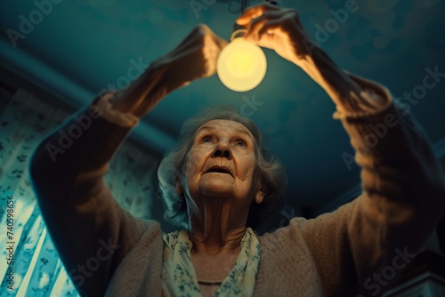 Vieille femme qui change une ampoule au plafond » IA générative
