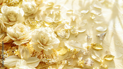 A tableau of bridal elegance, where pearls and lace whisper tales of timeless romance amidst the soft glow of matrimonial bliss