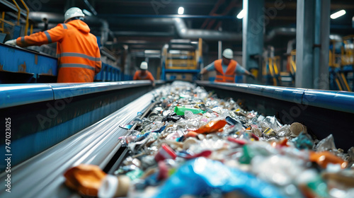 Conveyor Belt Filled With Plastic Bottles at Garbage Processing Plant