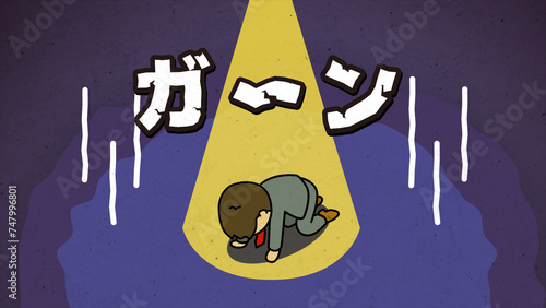 「ガーン」の文字付き・四つん這いで絶望を感じているサラリーマンのイメージカット