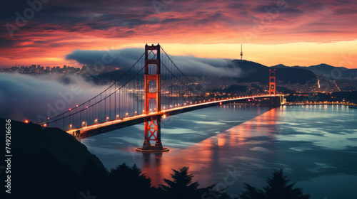 #758628308Sunset Bridge: Golden Hour Cityscape, Dramatic Impressionist Art