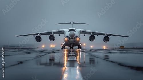Duży samolot z wielkim nosem i czterema silnikami na pasie startowym lotniska