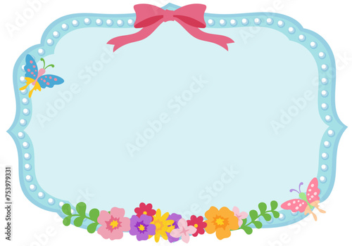 リボンと蝶をあしらったキュートでガーリーな長方形の花のフレーム
