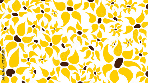 Ilustración digital de girasoles abstractos amarillos y marrones.