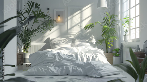Spacious and tranquil, this bedroom exudes a calm aura with sunlight filtering through and indoor plants adding life