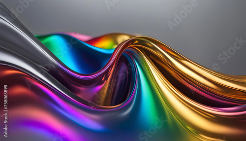 Abstract background from a rainbow flow of liquid metal on a gray background, wallpaper for design, refraction of colors and highlights, fantasy mysticism,