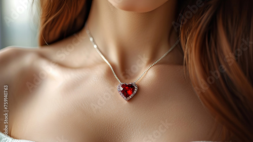 Red heart pendant on the neck beautiful girls