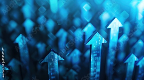 Blue arrows concept for economic and business improvement growth signs. AI generated image