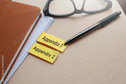 A pen pointing to the yellow tabs with the words Appendix 1 and Appendix 2.