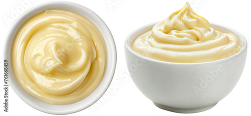 Bowl with white mayonnaise dip, side and top view, food bundle, isolated on a transparent background