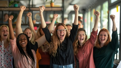 Diverse group of young women celebrating and expressing empowerment and solidarity for positive change