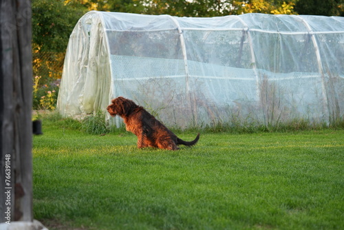 Wyżeł czeski, pies na trawniku, brązowy pies, wierny przyjaciel człowieka pies myśliwski